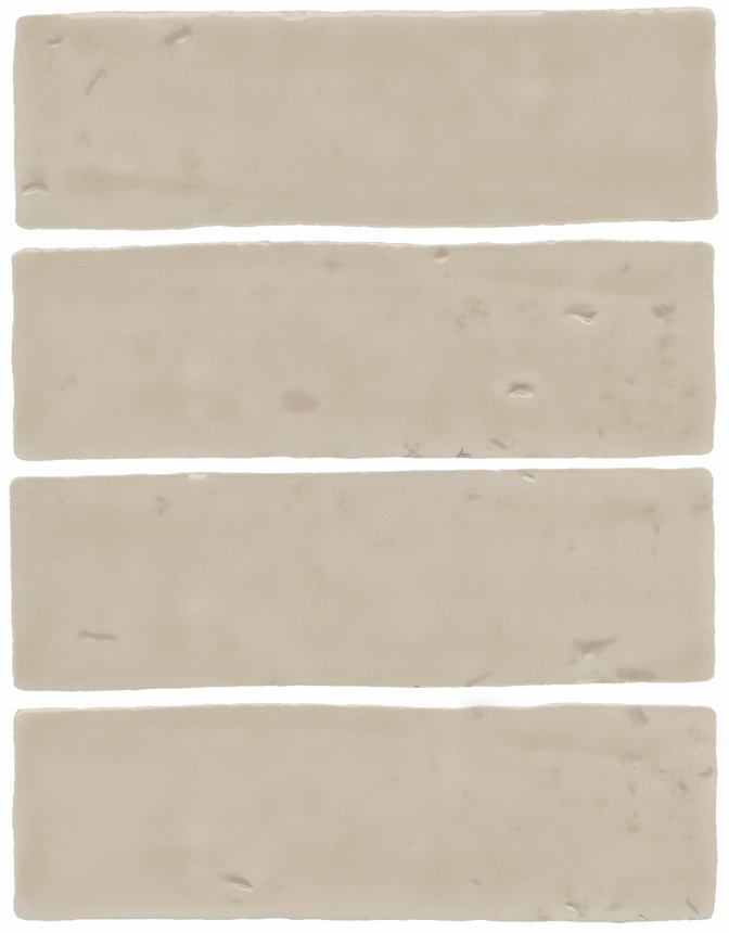Similar to the format of bricks, the glaze is in pastel colours. The edges of the tiles are slightly irregular.